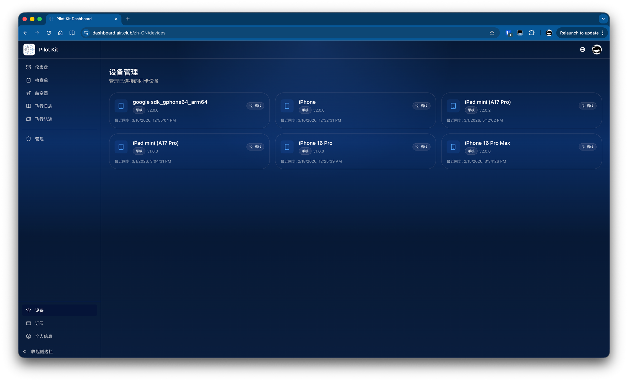 Once the user system was in place, the pilots in our group chat started clamoring for multi-device synchronization. So, I built multi-device cloud sync. To support these capabilities, I had no choice but to expand the API capabilities of the Pilot Kit Server and then develop a Pilot Kit Dashboard so that everyone can manage their flight data and checklists on the web.